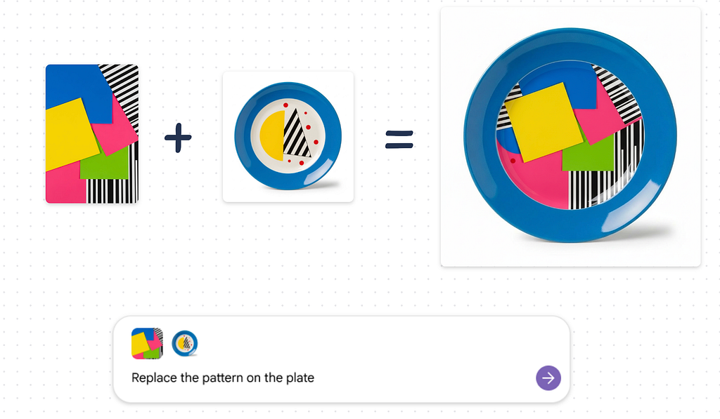 Quick tip: One nice thing about Mixboard is that it can both generate new imagery and remix existing images. For example, below you can see how to mix the pattern with the original graphic pattern on a plate.