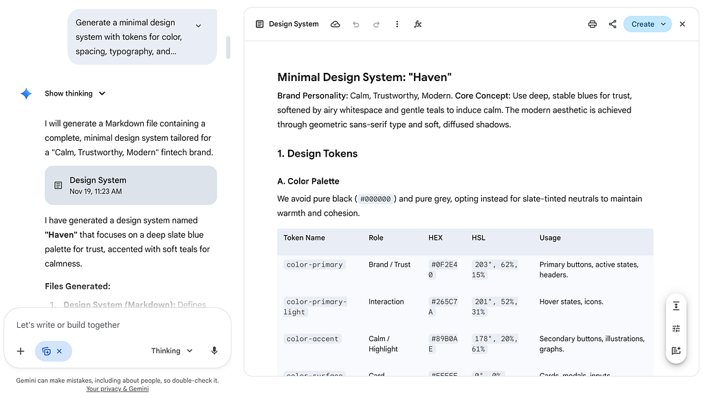 You can create the foundation of a future design system by asking Gemini to help with design system elements. You can use Gemini to: