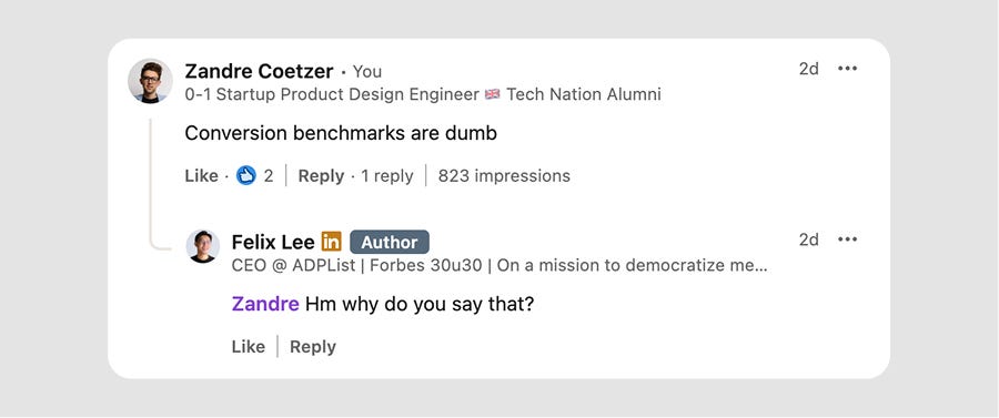 As Sean Ellis put it in Hacking Growth: “Growth doesn’t come from copying someone else’s benchmark — it comes from relentlessly experimenting at the sharp end of your funnel.”