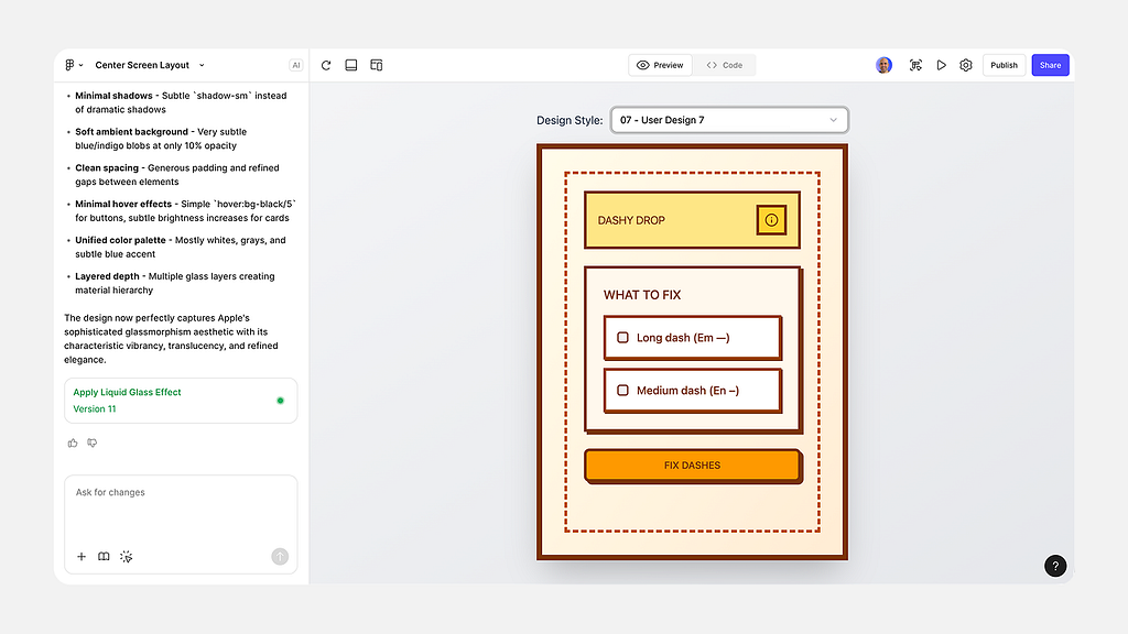 So I built Dashy Drop, the punctuation peacekeeper, a simple, universal fix that cleans text after it’s written, not before.