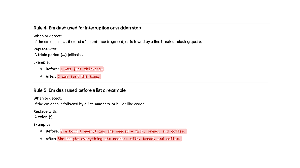 Each rule I wrote defined not just what to change, but why.