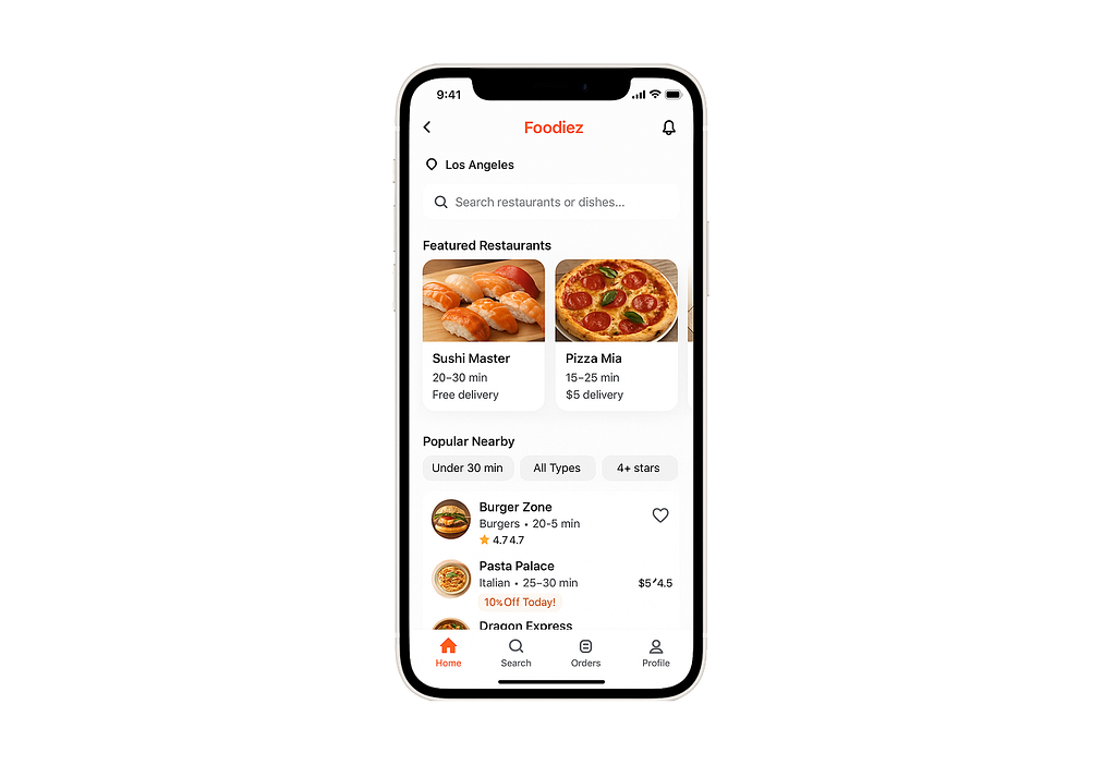 # Foodiez – Home Screen (iOS UI Design)