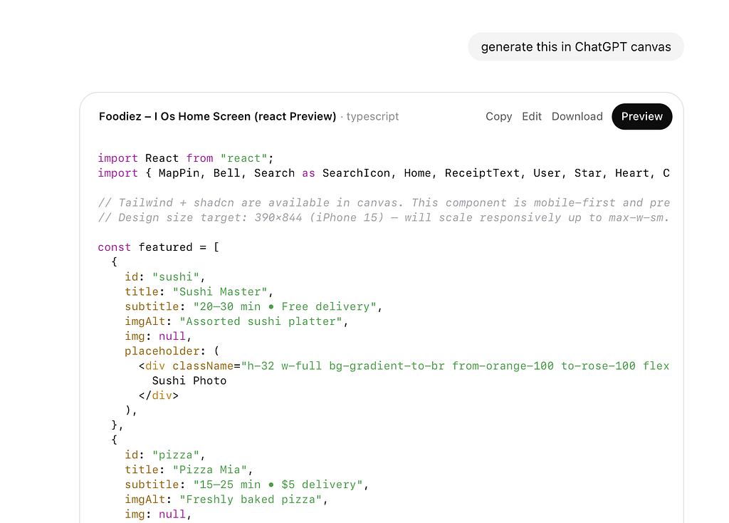 Now, let’s move from a general idea to a coded implementation of our app, all without leaving ChatGPT.
