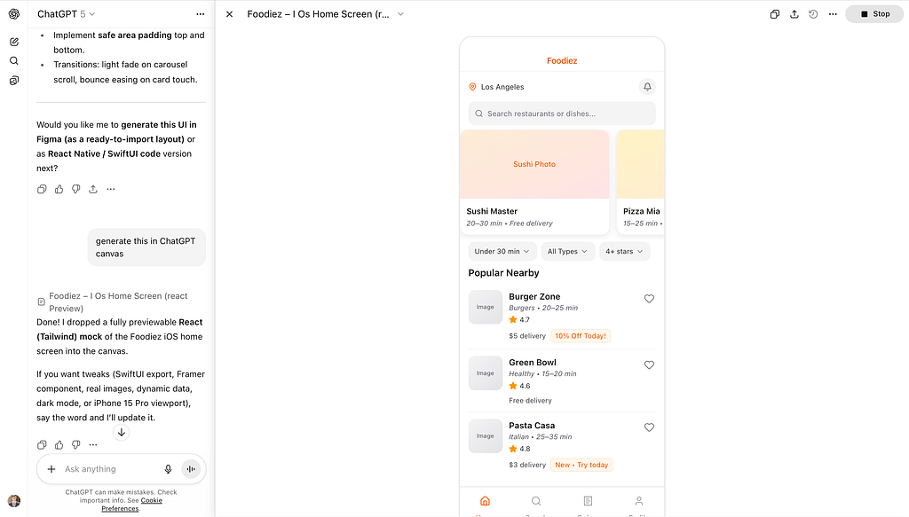 What I will do is simply complete the same experiment I did in April 2025 with ChatGPT 4o. I will be building a food delivery mobile app. If you’re interested in learning more about a previous experiment, please check the following article: