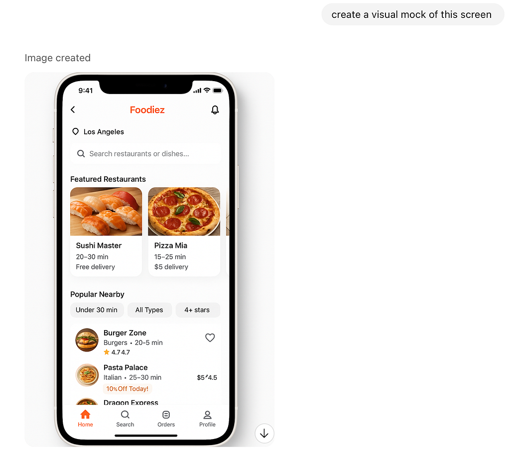 What I really like about ChatGPT is that it can generate not only a visual mock but also code your solution. If I provide a follow-up prompt like